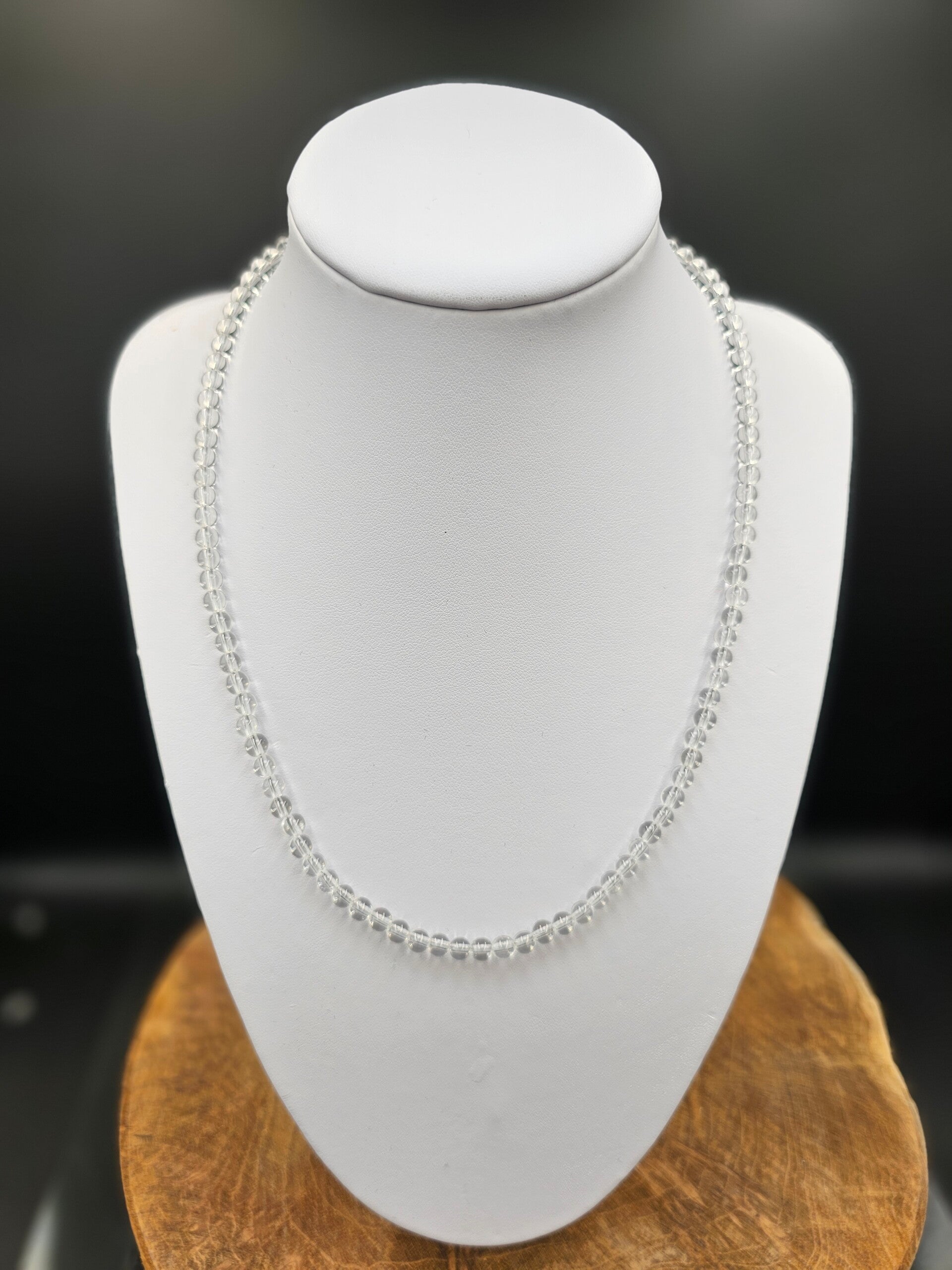 Bergkristal ketting (4mm) met zilveren slotje, lengte circa 46cm
