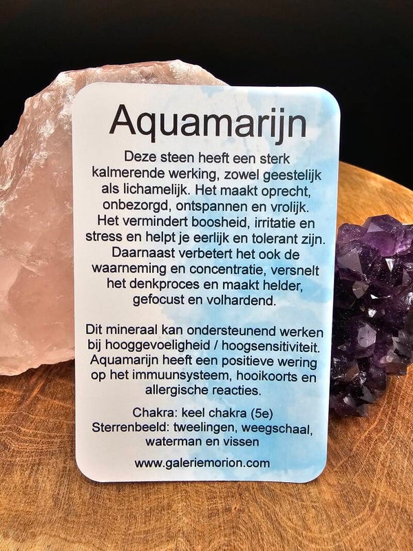 Bij aankoop van deze ketting krijg je een kaartje met de werking van de steen erbij (zie laatste foto)