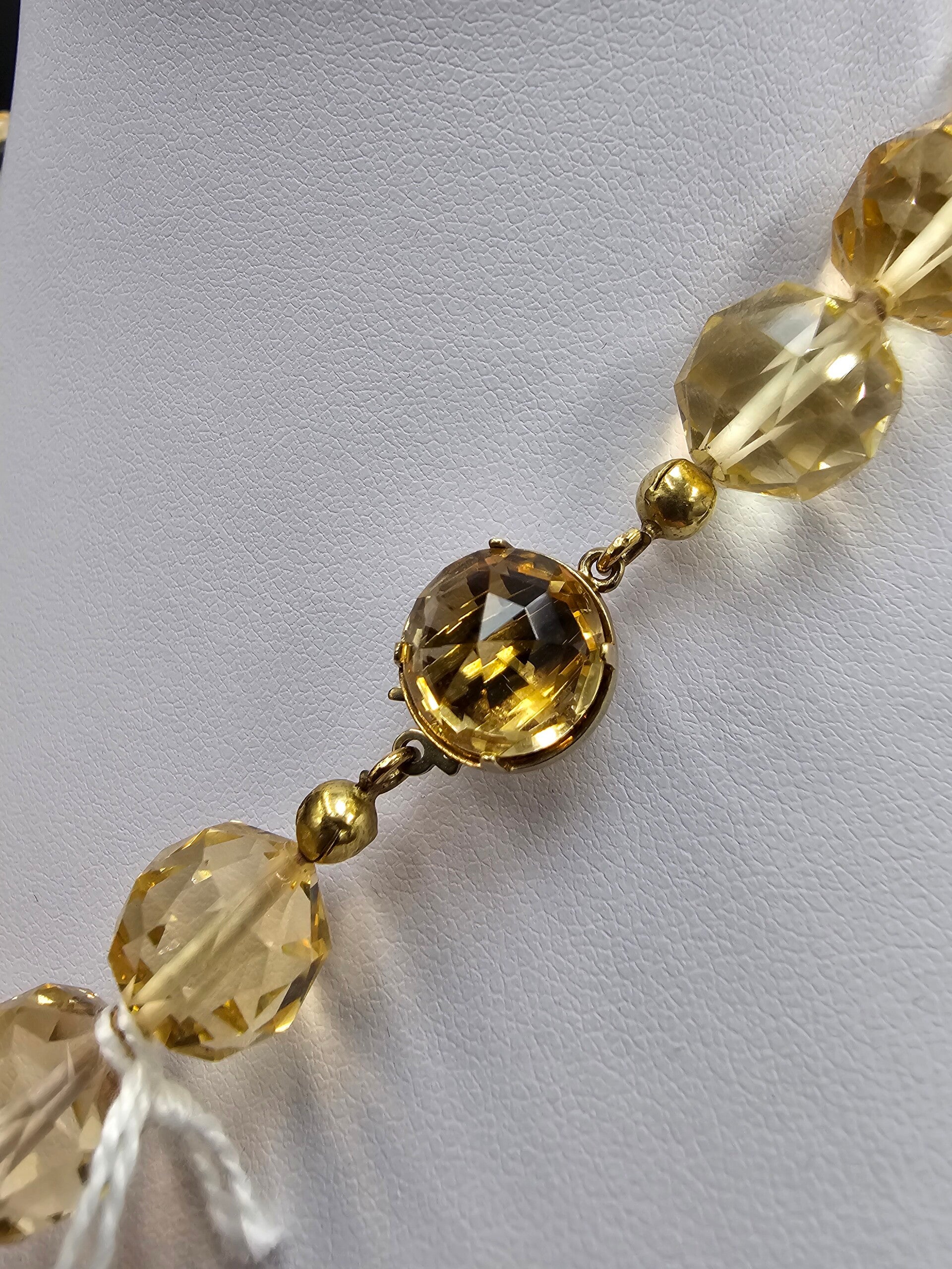 Citrien ketting (facet) met zilveren verguld slotje, lengte circa 49cm