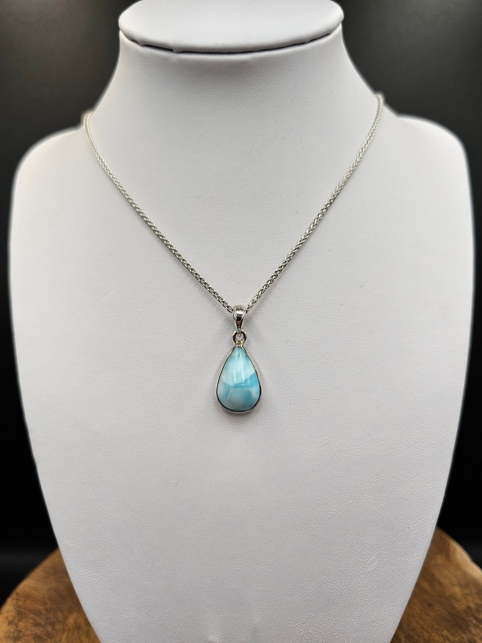 Larimar hanger in zilver gezet. Afmeting incl. oogje 29x13mm