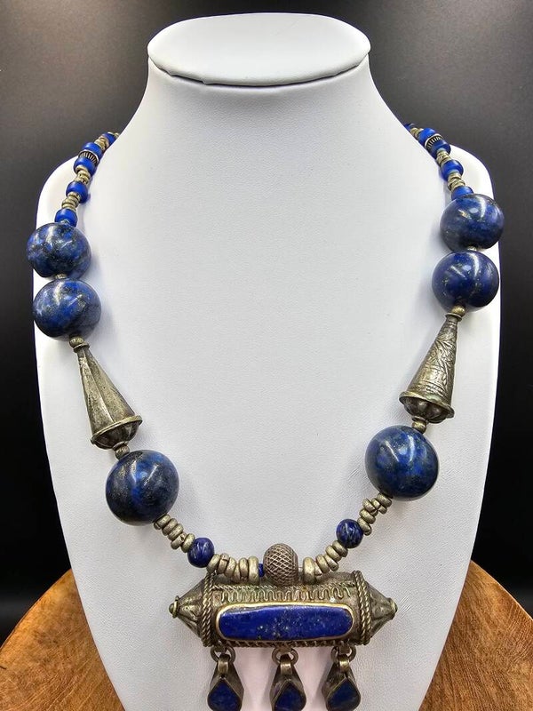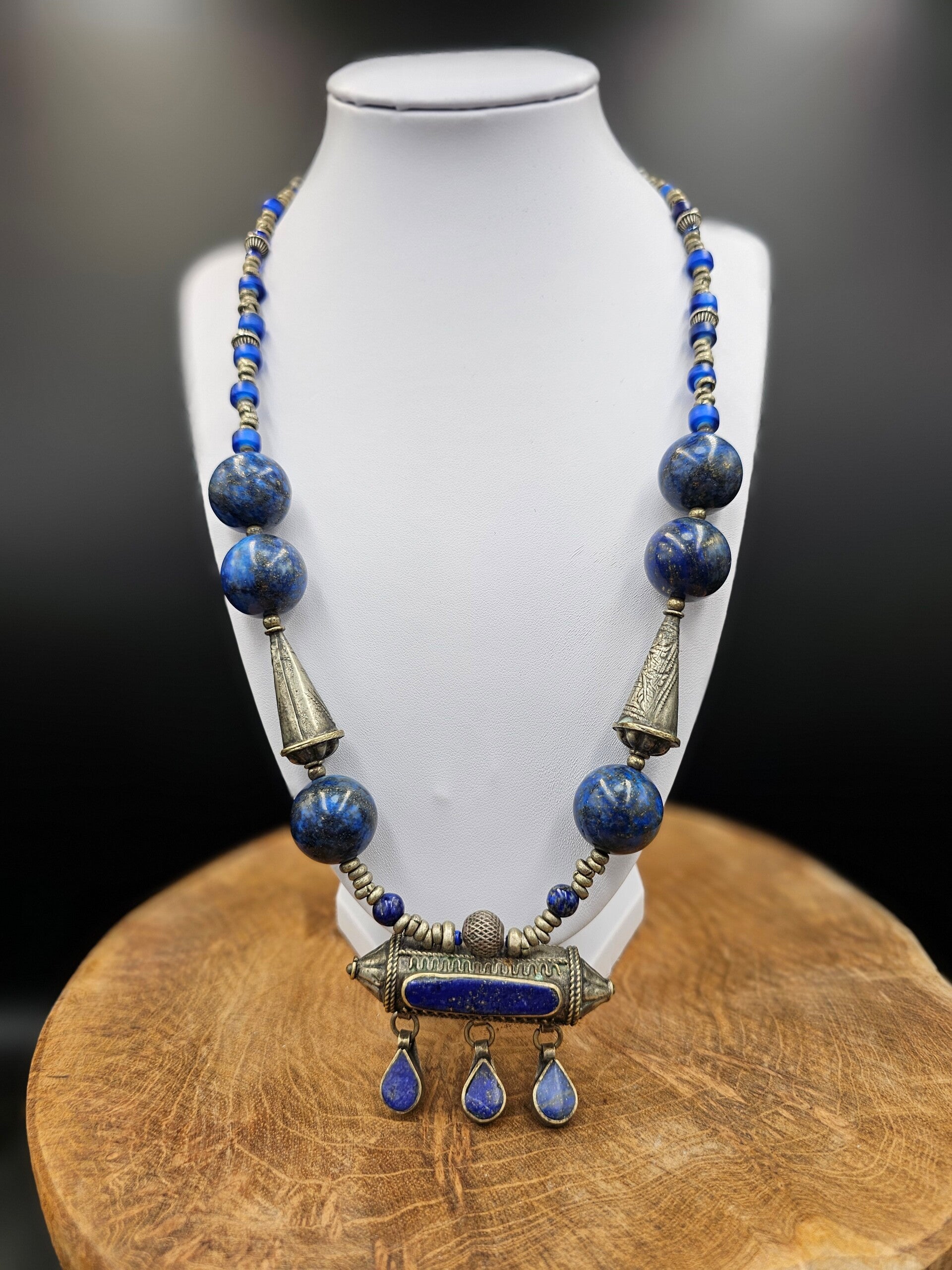 Lapis Lazuli ketting met authentieke Tibetaanse prayerbox (zilver), lengte circa 58cm (zonder slotje, deze ketting doe je over je hoofd om)