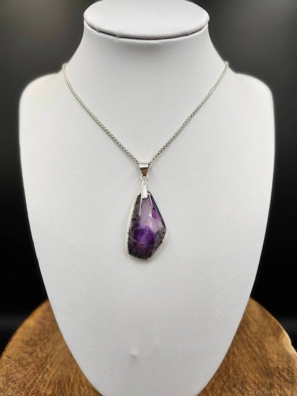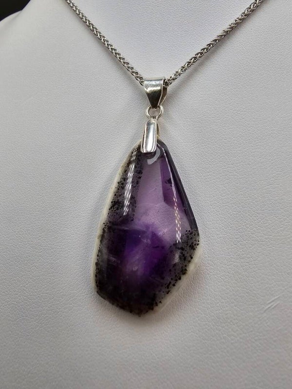 Flower Amethist hanger met zilveren oogje. Afmeting incl. oogje 50x21mm