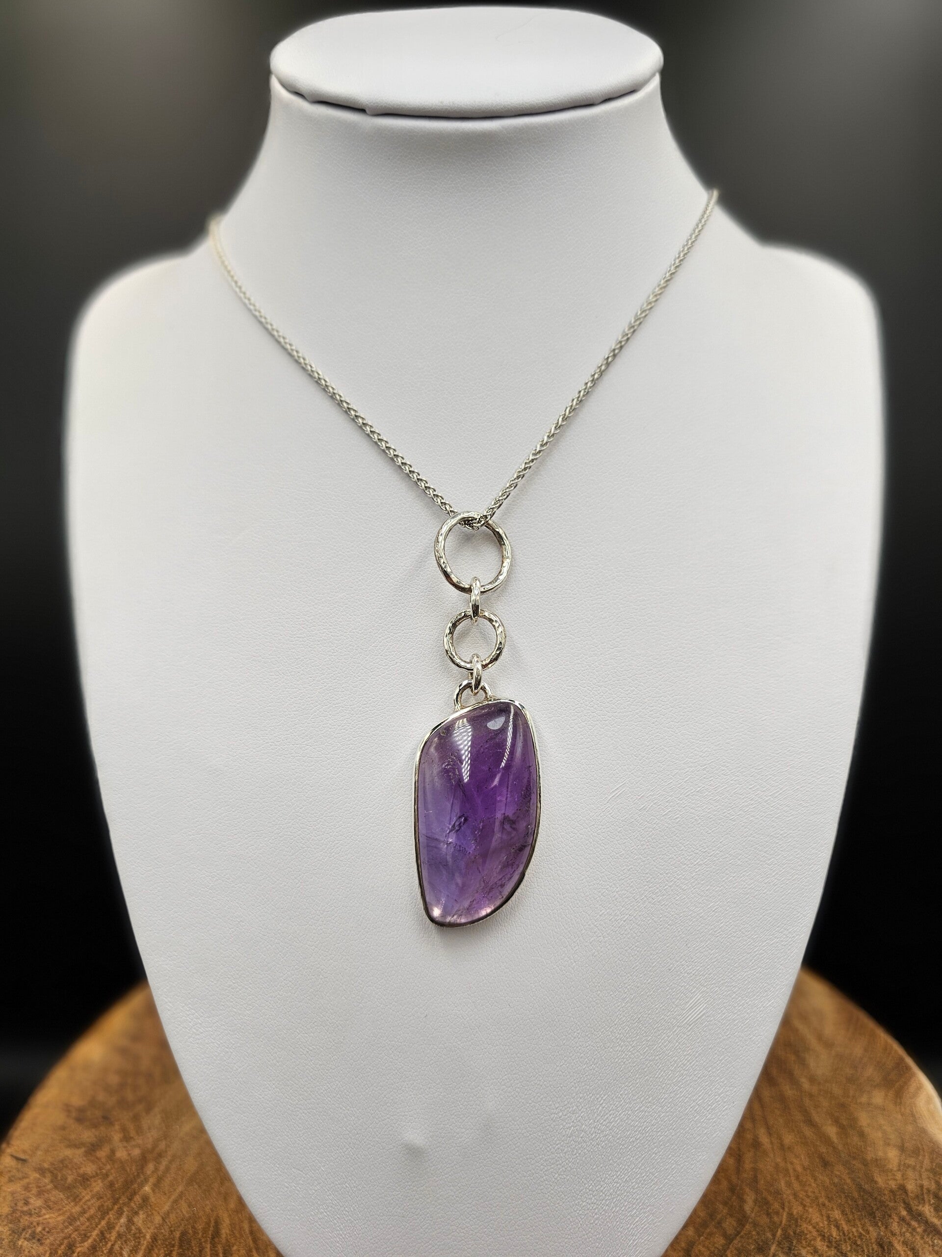 Flower Amethist in zilver gezet. Afmeting incl. oogje 63x20mm