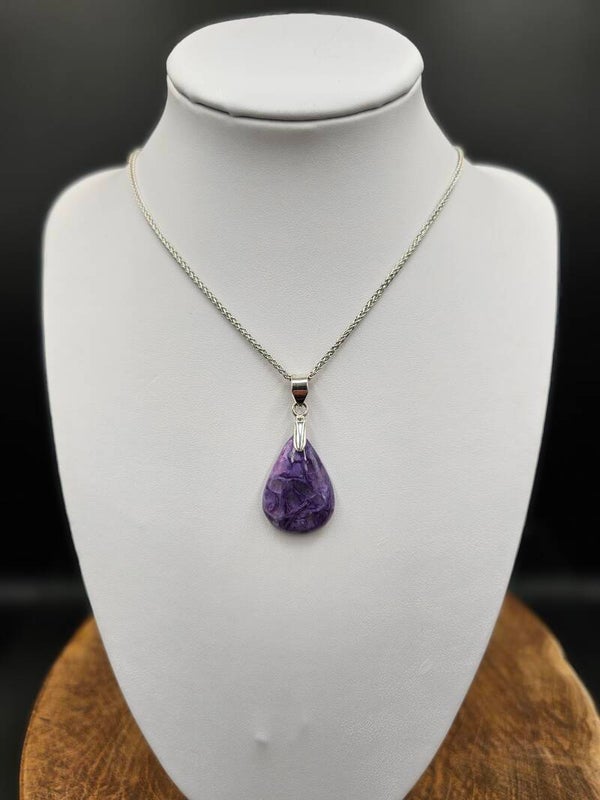 Charoiet hanger met zilveren oogje. Afmeting incl. oogje 42x19mm