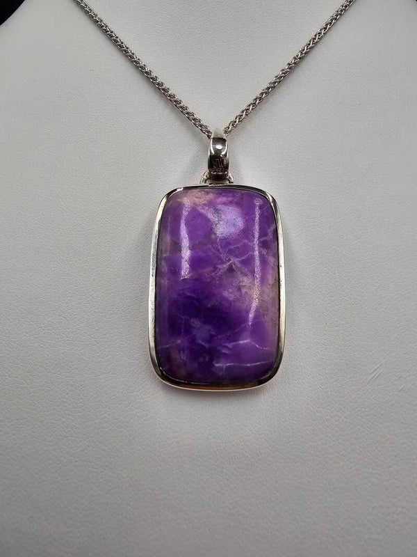 Sugiliet hanger gezet in zilver. Afmeting incl. oogje 46x22mm
