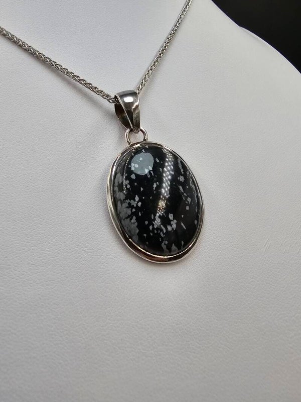 Sneeuwvlok Obsidiaan hanger gezet in zilver. Afmeting incl. oogje 40x22mm