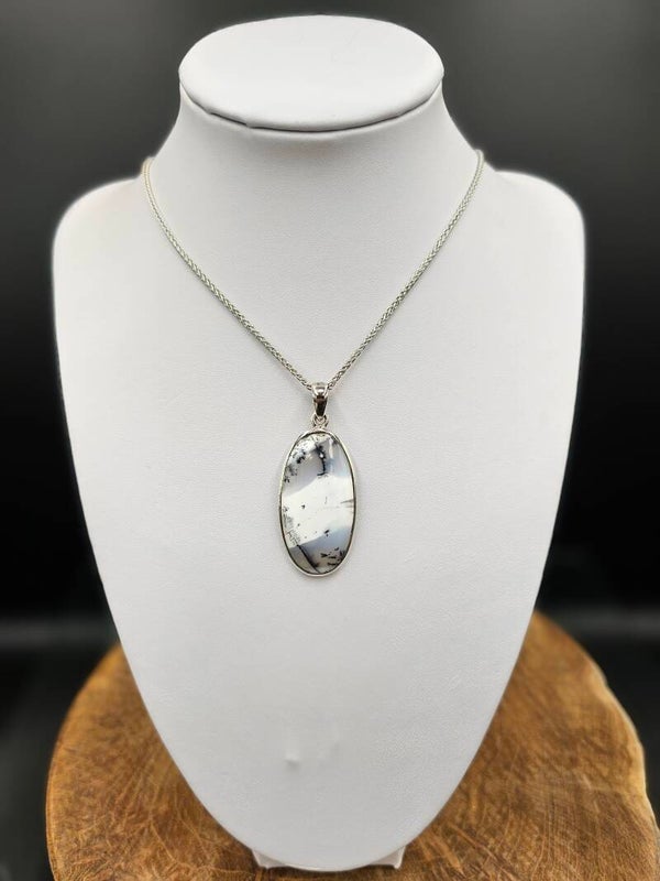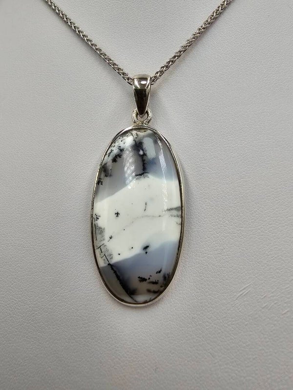 Dendriet agaat hanger gezet in zilver. Afmeting incl. oogje 49x20mm