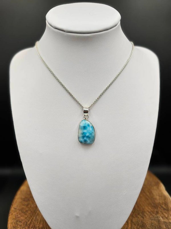 Larimar hanger gezet in zilver. Afmeting incl. oogje 33x16mm
