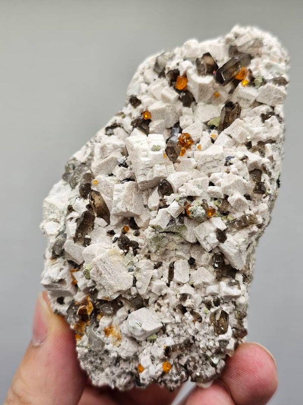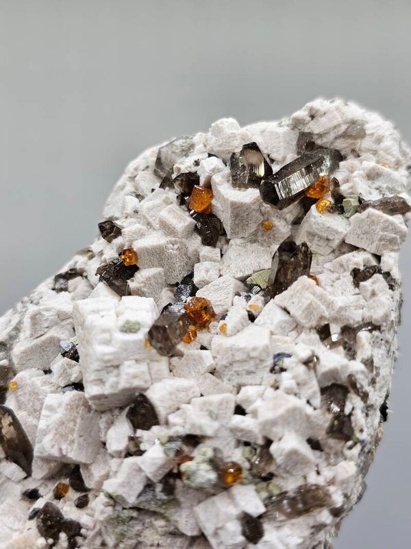 Spessartien (Granaat) met Rookkwarts, Muscoviet en Orthoklaas