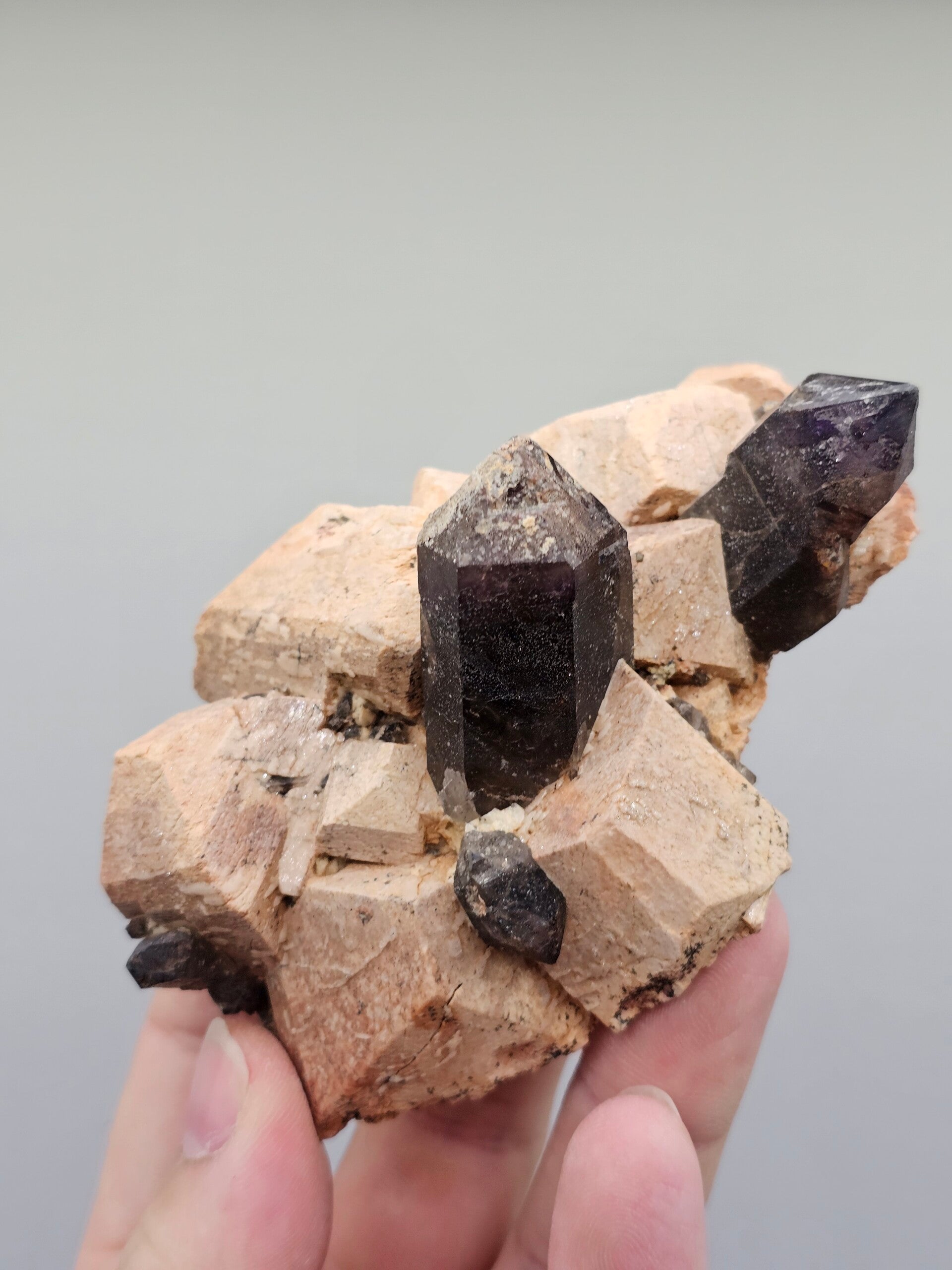 Amethist (gedeeltelijk Rookkwarts) met hematiet insluitingen op Otrhoklaas